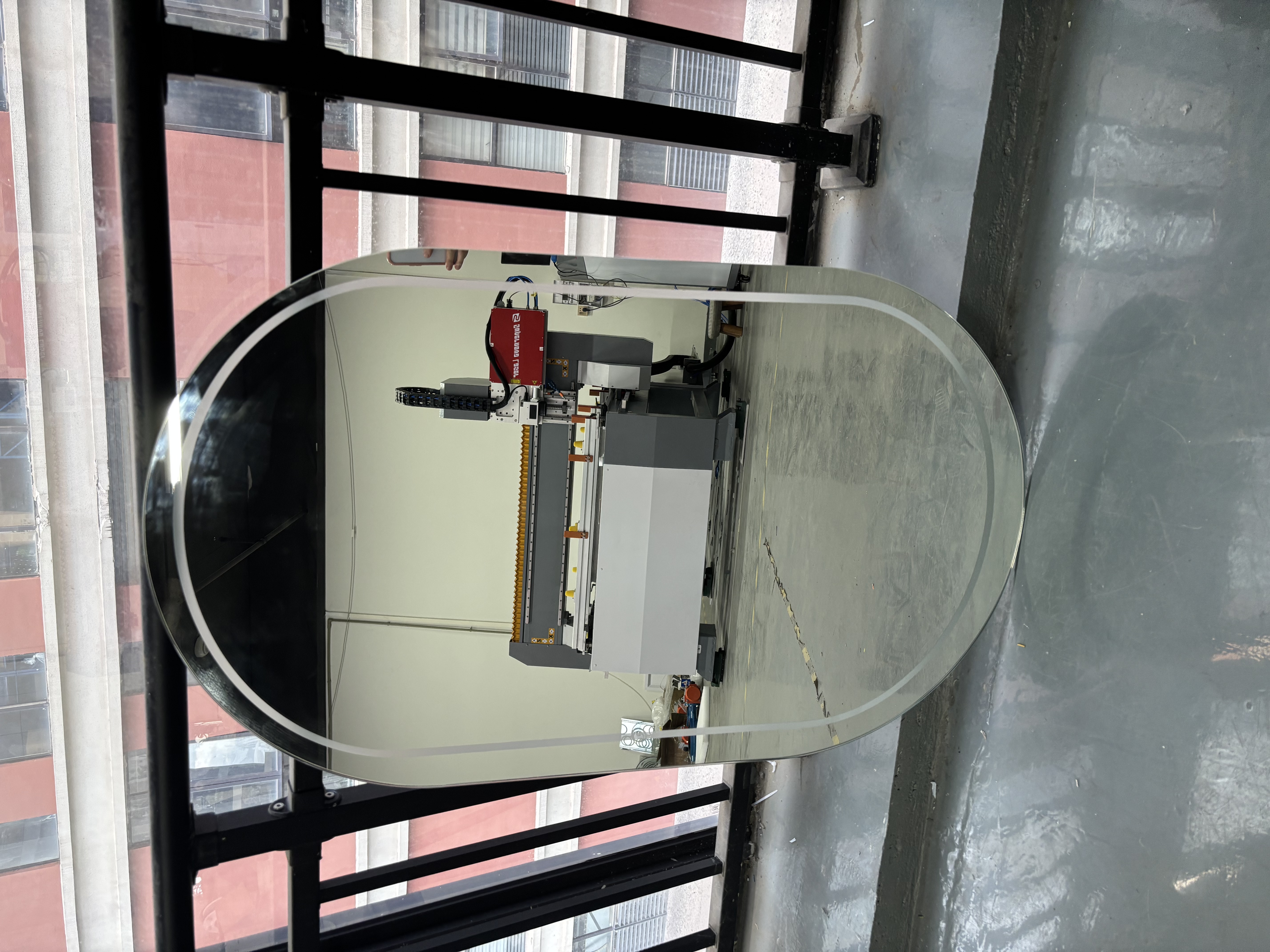 The large-format Smart Mirror Laser Sandblasting Machine replaces the traditional etching process — no masking, coating, or sand spraying is required. It is fast, clean, environmentally friendly, and low-cost, with no consumables or wearing parts. Any pattern can be processed directly from a design file.